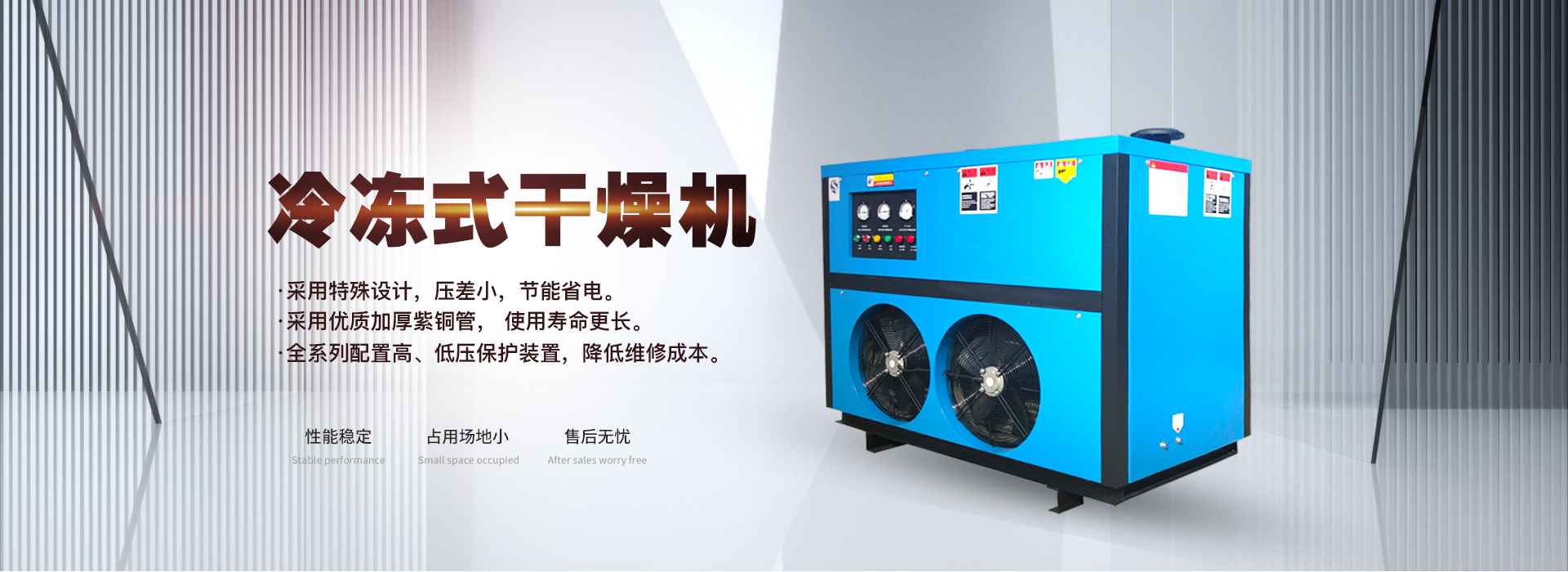 冷冻式干燥机运用了物理原理,将压缩空气中的水分冷冻至露点以下,使之从空气中析出的空气干燥机。受限于水的冰点温度,理论上来说它的露点温度可接近于0度,